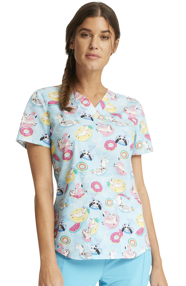 Make a splash in the Fashion Prints by Cherokee Women’s Go With The Float Print Scrub Top. It’s finished with two roomy front pockets so you can keep your essentials close at hand.