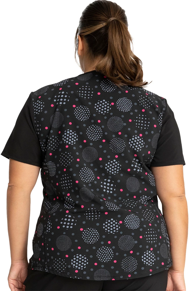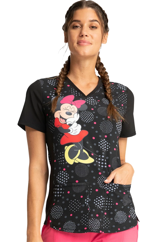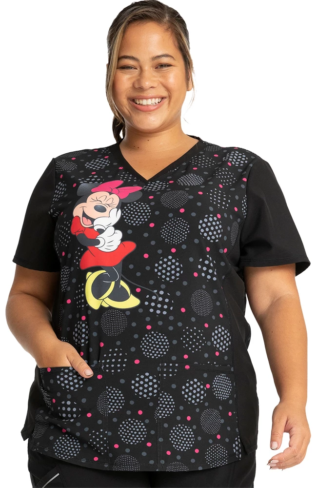 Show off your style in the Tooniforms by Cherokee Women’s Minnie Spotlight Print Scrub Top. Playful polka dots and contrast details add extra flair to this chic and comfortable scrub top.