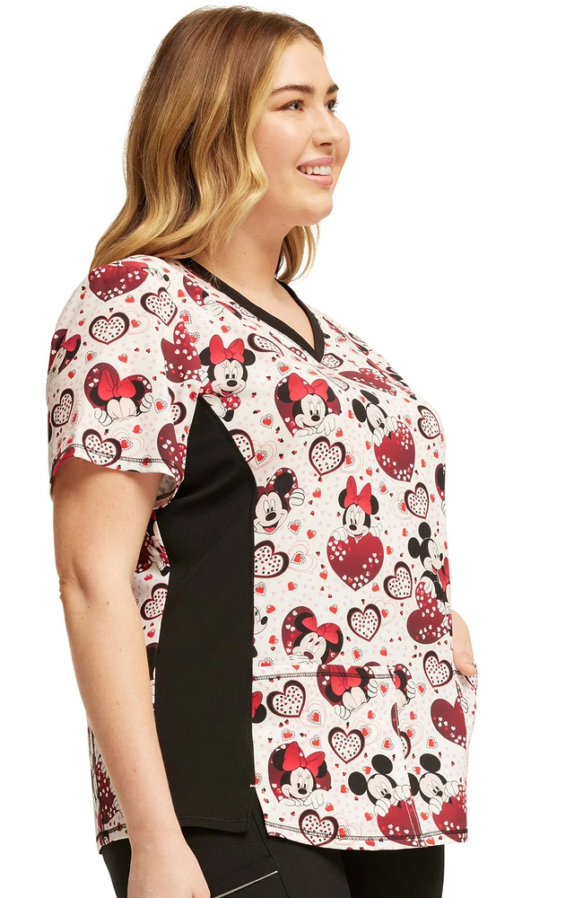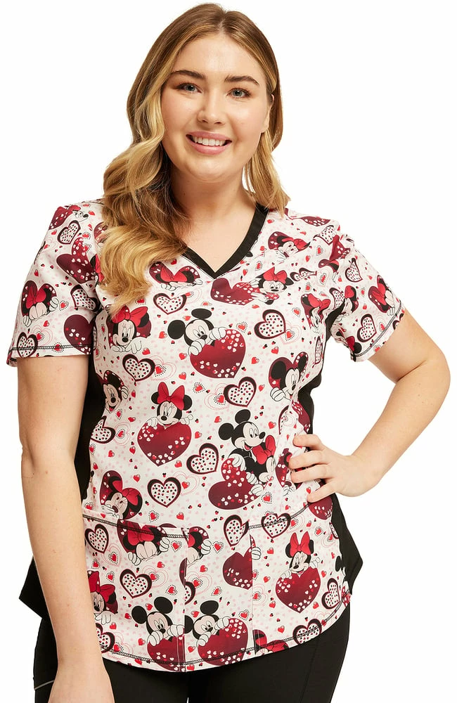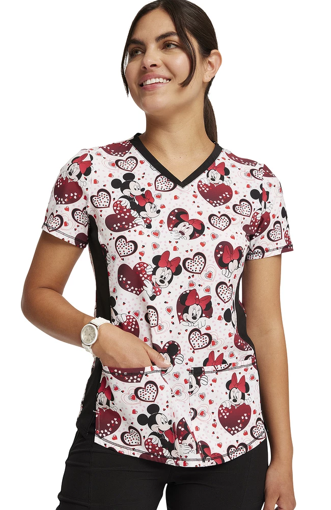 Show your love in the Tooniforms by Cherokee Women’s Hearts To You Print Scrub Top. Contrast rib knit panels add shape, style, and comfort to this essential scrub top that’s ideal for Valentine’s Day, casual Friday, or pediatric settings.