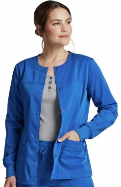 Keep things in motion with the ultra-durable, Balance by Dickies Women’s Snap Front Solid Scrub Jacket. This comfortable, lightweight jacket is perfect year round.