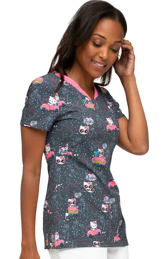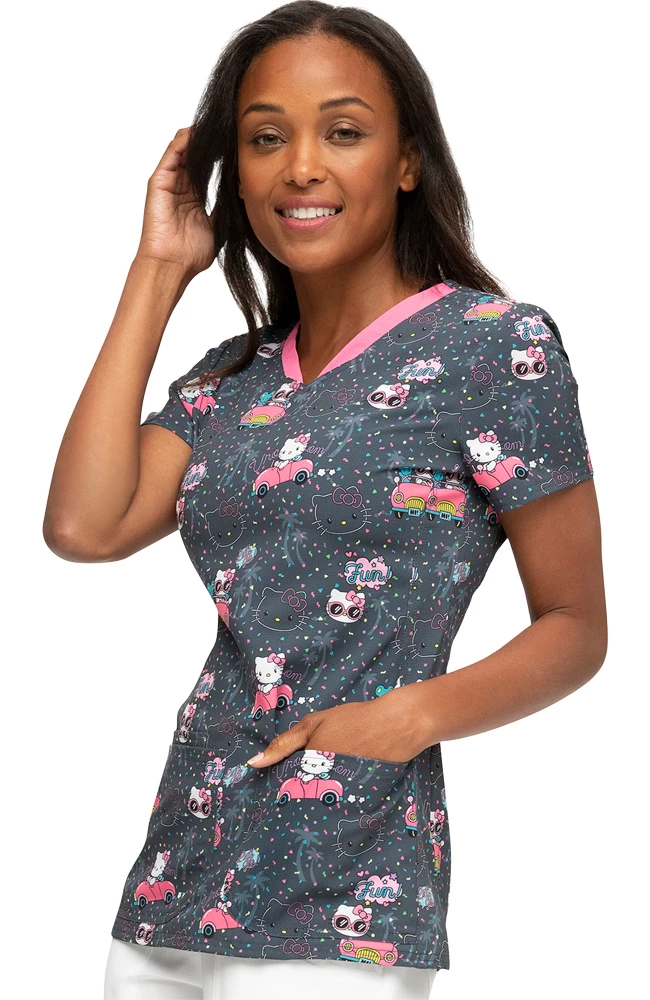 Get ready for compliments when you sport the Break On Through by heartsoul Women’s Kawaii Vacation Print Scrub Top. This ultra sweet scrub top is perfect for pediatric settings.