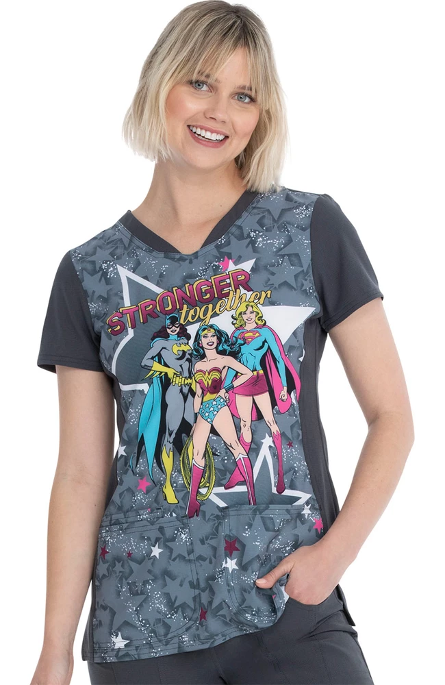 The gang is together again, with the Break On Through by heartsoul Women’s Stronger Together Print Scrub Top. This super hero squad is the ultimate girl power statement piece.