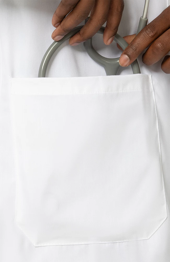 Landau Scrubs move with you all day long. This Landau Men’s Three Button Closure Consultation 30¾” Lab Coat has a two-piece vented back, three front pockets, and two inside pockets. Made of polyester and cotton.
