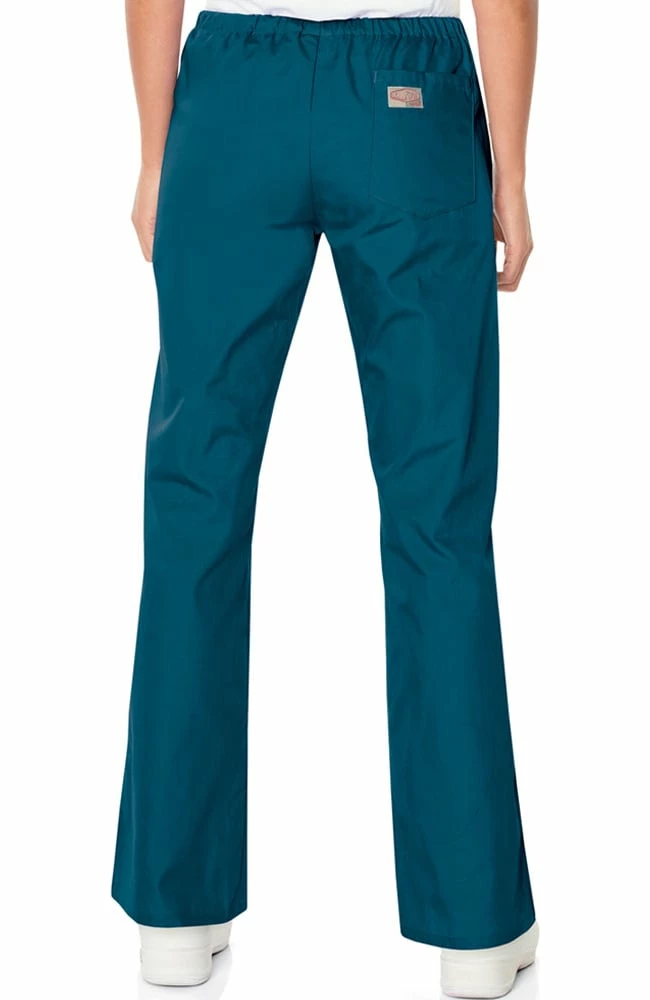 These flare leg scrub pants from Scrub Zone work tough, fit comfortably and offer extraordinary value. They are mid-rise with a drawstring front and elastic back waist. The flared legs have side vents. There are also two side-seam pockets and one back pocket.