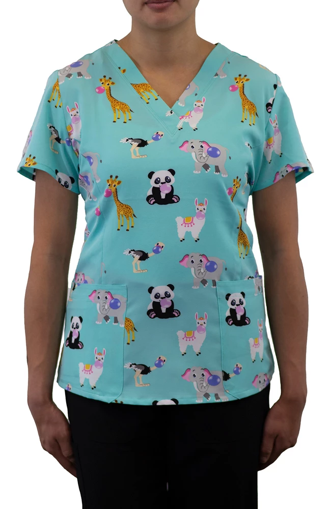 With its zoo animal print and calming blue shade, the Maevn Uniforms Women’s Bubblicious Print Scrub Top is perfect for pediatric or veterinary settings. This sweet scrub top has figure-flattering princess seams and three pockets to hold your gear.