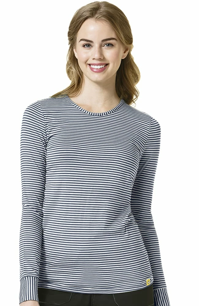 Under scrubs or on its own, this Layers by WonderWink Women’s Silky Long Sleeve Stripe Print Underscrub T-Shirt provides unbeatable comfort. A Junior contoured fit is snug enough for layering, but still allows plenty of movement.
