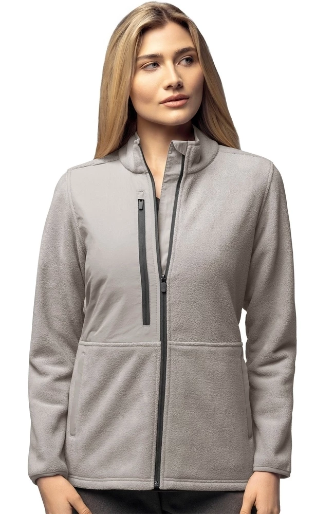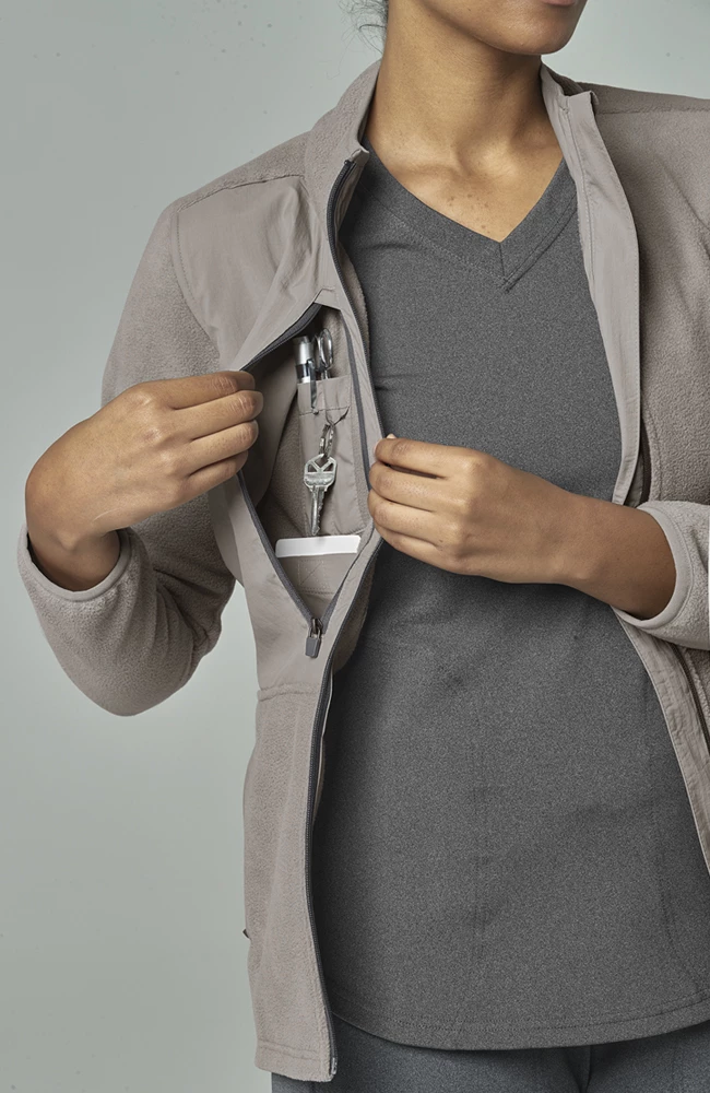 The Slate by WonderWink Women’s Micro Fleece Zip Pocket Jacket is not your average fleece jacket. It’s designed with secure pockets and slots to stash your keys, pens and cards, an inner pocket for your phone, and a badge loop, so it’s truly functional. In ultra-soft, water-repellent microfleece, it’s a refined layer that will elevate your work look.