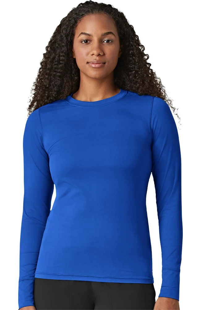 Made for the modern healthcare worker, the Layers by WonderWink Women’s Performance Long Sleeve T-Shirt is built with a back neck loop for headphones, so you’re always dialed in. This super soft, breathable long sleeve tee has thermoregulation to keep your body cool and comfortable, even through the longest of shifts.